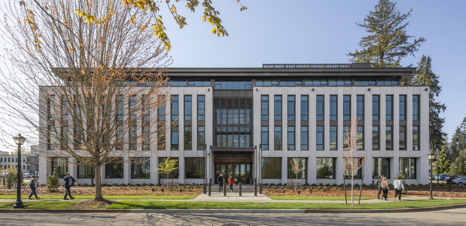 The Newhouse Replacement Project replaces the existing Irv Newhouse Building that was originally constructed in 1934 as a temporary structure to house members of the senate and their staff. The new building, constructed with a mass timber and steel superstructure and a precast concrete and glass façade, will hearken back to the neoclassical architecture common on the Washington State Capitol Campus while highlighting a modern design aesthetic featuring clean lines and extensive exterior glazing.